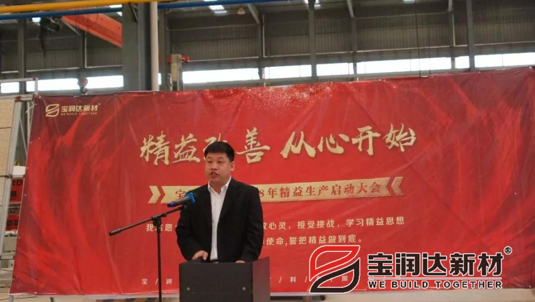 會議開始,寶潤達新材董事長黃強作精益改善啟動大會開場詞,指出精益改善項目實施的意義及必要性。黃董表示,精益改善是寶潤達變革發展中至關重要的一環,而我們剛剛開始萬里長征中的第一步。